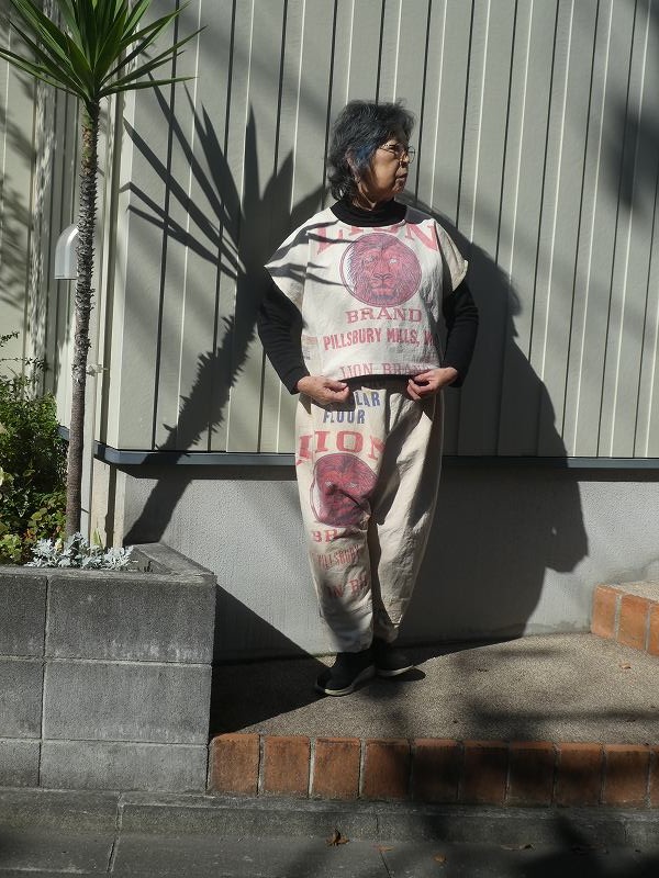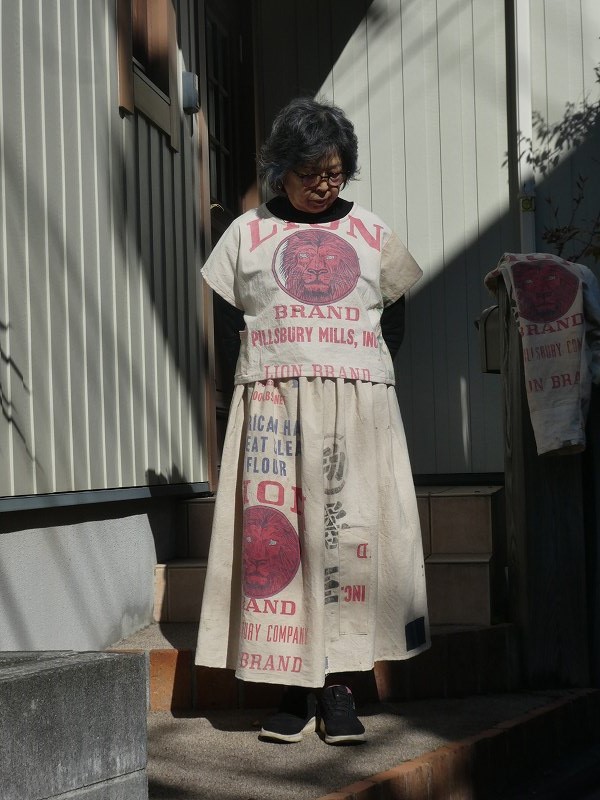 まずは簡単な自分用のスカートから ベストもセットで魔女が着るので小さな布を寄せ集めたもので、、 粉袋の端切れは汚れもあるけれど接ぎを当てたりしながら縫った 汚れは古の人たちの汗と涙の宝物 <魔女は全く気にはならない ここまで白かったら素晴らしいのよ@@ 襤褸好きには褪せた色がまたいいのである。<ライオン2個は豪華ですね。